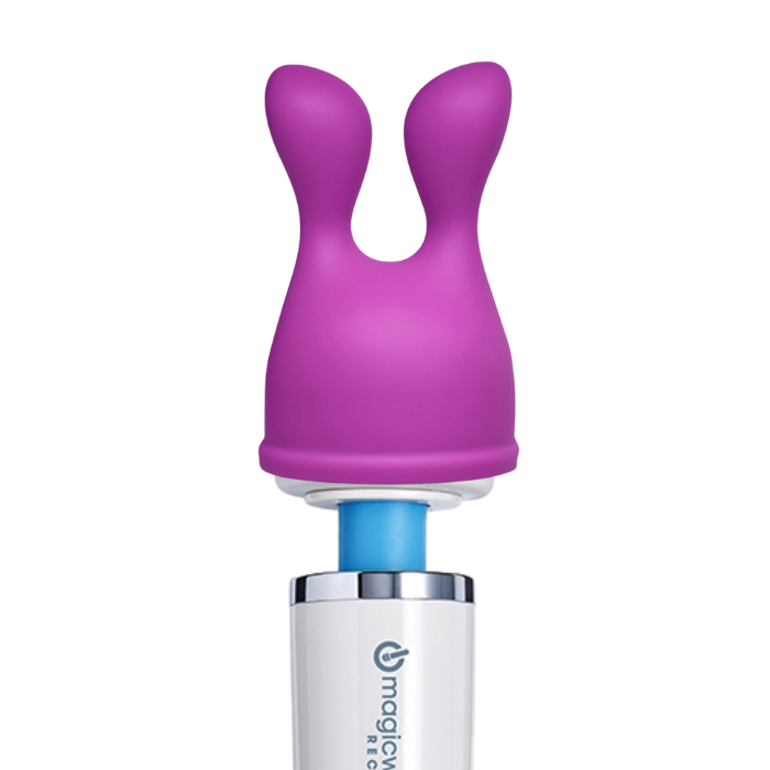 Introducing The Bliss Tips attachment which dual tips and fits over the head of your favorite Magic Wand Massager. The twin pleasure tips allow you to experiment with vaginal or anal pleasure with it’s simulating two finger like tips. You will notice the plush feeling of this silicone based Hitachi Magic Wand attachment which is finished in a vibrant yet soothing purple. The Bliss Tips attachment is approximately 4 inches in total length and has insertable tips for 2 of those 4 inches. This device fits all massagers that have a 2.25 to 2.4 inch diameter head. PLEASE NOTE, this attachment will not fit the Magic Wand Mini or Magic Wand Micro massagers.